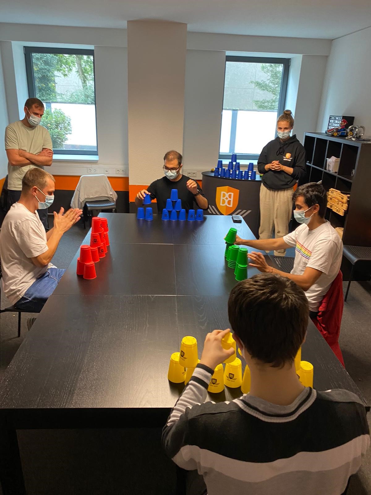 The team loves doing activities together such as bouldering, enjoying an afterwork beer or playing games (online and offline) together.